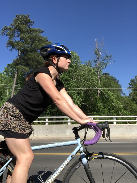 I am married to jazz guitarist Doug Sours, who teaches at Guru Guitars in District D. We have a young pup named Willow. I commute to work by bicycle – see you on the greenway!
